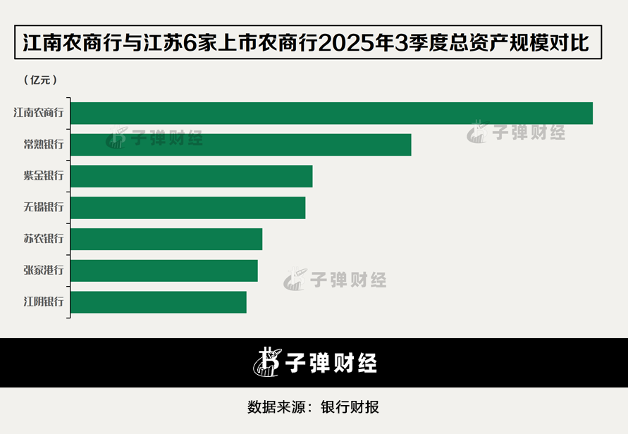 「创业最前线」研究发现,截至2025年三季度,江苏农商行的总资产规模达到6165.1亿元,规模实力远超江苏省6家上市农商行。